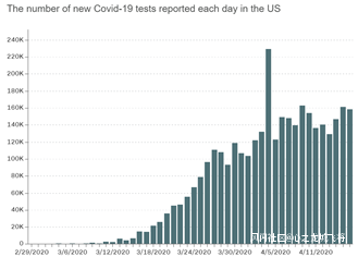 數據顯示,美國近期每天的病毒檢測約在15萬次左右,包括公共實驗室和商業實驗室,這已經比前一段時間大幅提升,但仍遠遠不夠。保守派智庫“美國企業研究所(AEI)”估計每天需要50萬次以上的檢測,哈佛大學薩夫拉中心(Harvard’s Edmond J. Safra Center)認為每天至少要到幾百萬次,而諾貝爾經濟學獎得主保羅·羅默(Paul Romer)甚至認為應該達到每天2000萬次以上。