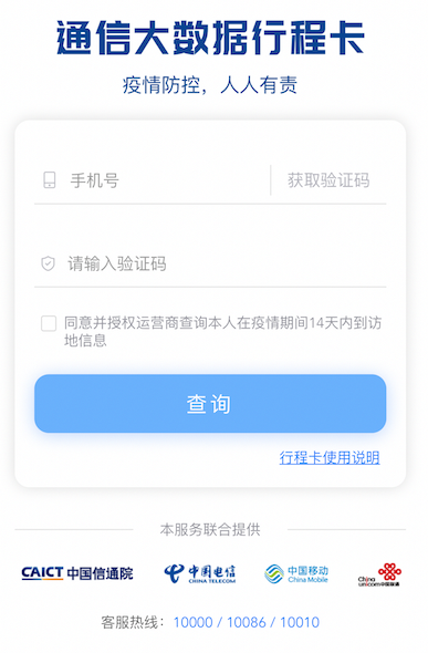 “疫情防控通訊大數據行程卡”程序掃碼登陸界面及使用説明
