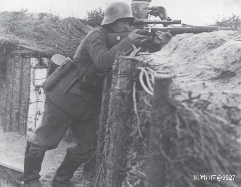 但在交火中使用步槍是有限制的。戰鬥越來越多地被限制在建築密集區,小規模的戰鬥小組在蘇聯城市的廢墟、地窖和水渠的“兔子洞”裏互相跟蹤。單發步槍的射速很慢,雖然雙方都發放了大量的衝鋒槍,但顯然需要一種比衝鋒槍精度和穿透力更強的半自動步槍,以及能夠安裝瞄準鏡進行狙擊的半自動步槍。在芬蘭戰爭之前,俄國人在1936年的西蒙諾夫設計的基礎上,率先推出了還有缺陷的託卡列夫SVT38半自動步槍。該槍採用了蘇聯的7.62毫米子彈,並使用了一個導氣式系統,在槍管上方的氣管內裝有一個活塞。在射擊時,槍管上的氣體排出口將廢氣引入管內,將活塞吹回,使槍機後退,從而使步槍上膛。作為一種設計,它很聰明,後來被許多人模仿。然而,作為一種步兵步槍,它被證明太不可靠了,後坐力大,零件故障多,而且容易在泥土和污垢中卡住。儘管如此,一些步槍還是裝上了瞄準鏡,在保養良好的情況下,它們顯示出了一定的潛力。