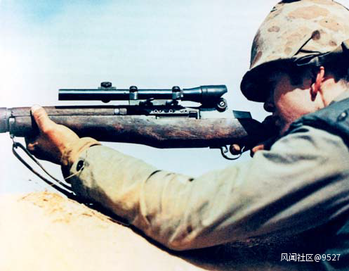 在太平洋的某處,一名海軍陸戰隊員在清洗他的未裝彈的斯普林菲爾德步槍。雖然瞄準鏡過於細長和脆弱….. …但它證明了它的價值…. …Unertl贏得了所有在戰役中使用它的人的尊重,其中許多槍後來還在韓國和越南服役。
