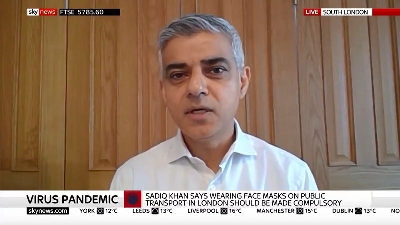 據BBC報道,17日,倫敦市長薩迪克汗表示已向英國政府提議強制市民戴口罩,要求倫敦民眾在公交或超市等無法保持社交距離的場合,必須佩戴非醫用口罩,以避免新冠肺炎病毒的傳播。