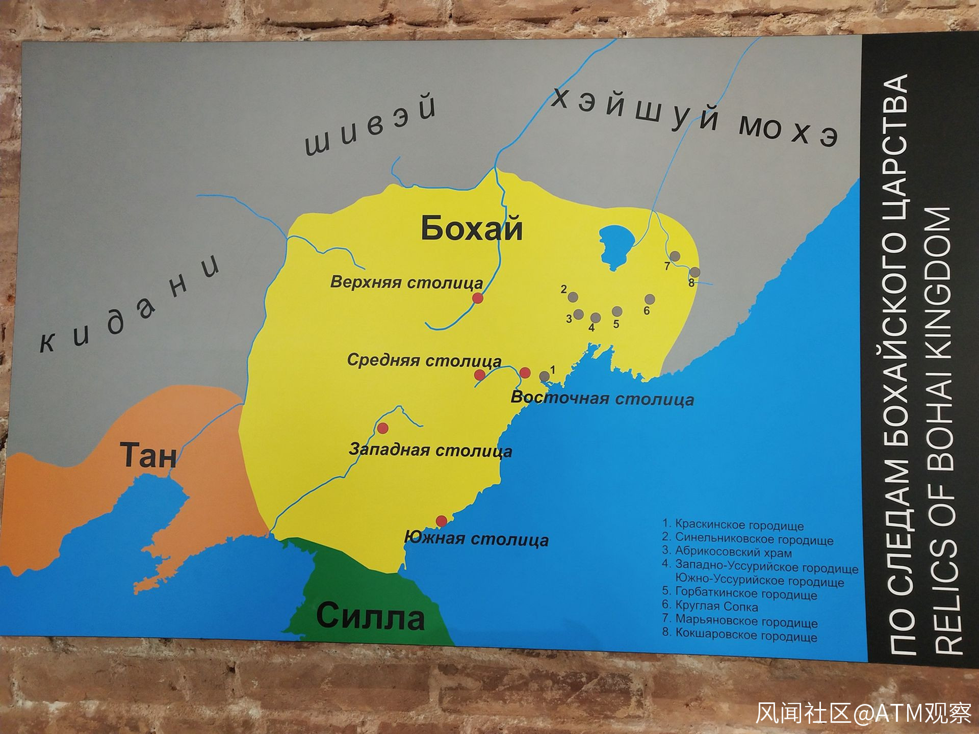 公元8世紀左右,東北亞地區高麗(Силла,綠色)、唐朝(Тан,橙色)、渤海國(Бохай,黃色)、契丹(кидани)、室韋、黑水靺鞨等國家/部落形勢圖。(許陳品/多維新聞)