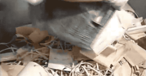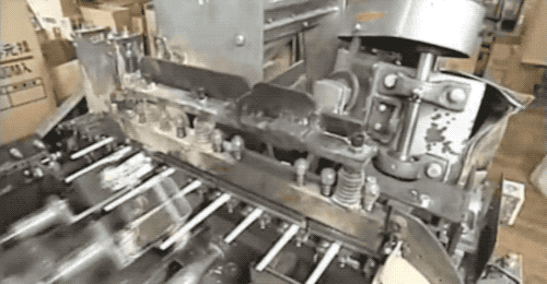 來看一個筷子送進紙殼時的特寫,左側凸起的是氣噴嘴,瞬間噴出一陣高壓氣體,就給紙張吹鼓盪起來了,然後趁紙不注意把筷子塞進去…