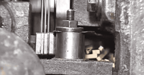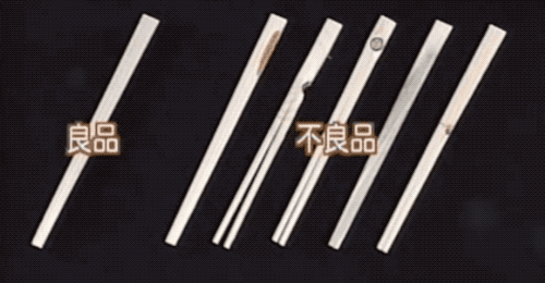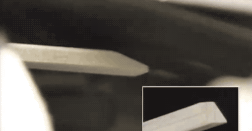 再來看慢動作,機器夾住大頭那端,然後切刀把筷子頭一分為二。