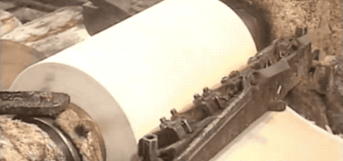 等乾燥後,就可以整段的刨削成卷材了。刨削出的厚度,差不多就是筷子的厚度。
