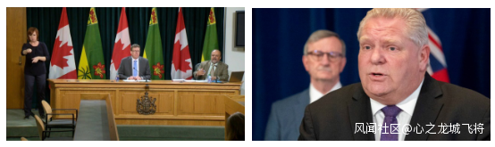 △上圖分別為加拿大各省省長或衞生廳長與首席醫療官在一起舉行疫情新聞發佈會 順序分別為:不列顛-哥倫比亞省、艾伯塔省、魁北克省、新斯科舍省、薩斯喀徹温省、安大略省、紐芬蘭和拉布拉多省