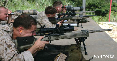 美國軍方自然對這種子彈表現出了極大的興趣,雷明頓公司生產了自己的AW版本--模塊化狙擊步槍(MSR),該子彈正在進行.338in Lapua和.300in Win-Mag口徑的測試,可能很快就會被美軍採用。海軍陸戰隊目前正在使用的是第三代雷明頓700式步槍,即M40-A3,該步槍採用重型61釐米長施耐德1:12纏距不鏽鋼槍管(槍管壽命超過1萬發),配備施密特&本德3-2x50瞄準鏡和Simrad KN200夜視瞄準鏡。這些步槍的一個缺點是,無法裝填較大口徑的馬格南彈匣,因此海軍陸戰隊也在試用 Iron Brigade Armory 公司(IBA)的XM-3系統。該槍也是以雷明頓步槍為基礎,但以最高規格製造,槍管只有47cm長的哈特不鏽鋼槍管(22in至24in是狙擊步槍的常用規格),配有McMillan可調式槍托,Nightforce NXS 3.5-5x50瞄準鏡和全套維護包。儘管這支步槍的槍管很短,但配上抑制器後,它可以保證在1000米的距離上達到令人印象深刻的亞分角三發散布精度。稍微有點絆腳石的是價格,對於任何軍用栓動步槍來説,19,000美元不到的價格肯定是昂貴的。