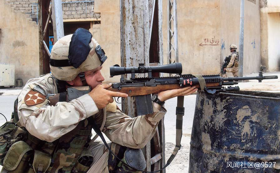 第23步兵團第1營的Jeremiah Johnson中士在伊拉克摩蘇爾瞄準射擊。他的7.62毫米M24 SWS步槍是該系列中的最後一把狙擊槍,它的起源於1944年的M1-C Garand。隨着這些步槍的磨損,它們正在被M110 SASS步槍所取代。
