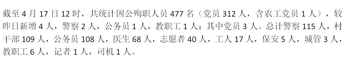 雖然疫情沒有平復,但疫情的艱難和困苦離我們慢慢遠去,我們的生活逐步恢復了正常,在這次抗擊疫情的過程中,警察犧牲的最多,另外還有一組數據,村幹部也犧牲了一百多人。