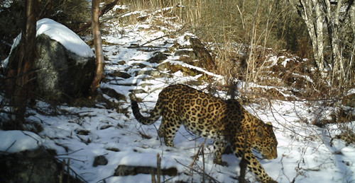 近日,陝西省龍草坪林業局、陝西省動物研究所在整理紅外相機監測資料時發現,在秦嶺的興隆嶺和天華山金錢豹種羣重要走廊帶區域內拍攝到野生金錢豹畫面。這表明其種羣在秦嶺活動範圍不斷擴大,並已建立了穩定的金錢豹種羣。