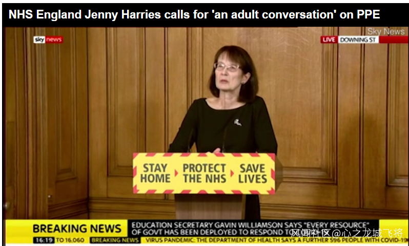 不過,比物資沒有如期抵達更讓醫護人員憤怒的,卻是英國副首席醫療官詹妮·哈里斯當天對媒體的表態。