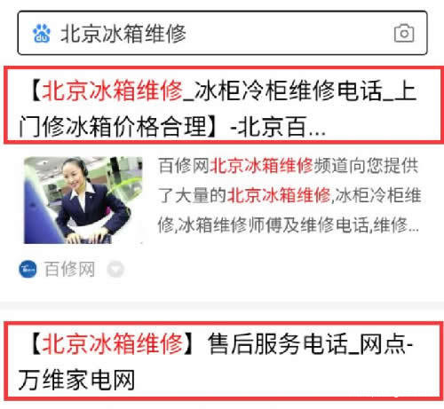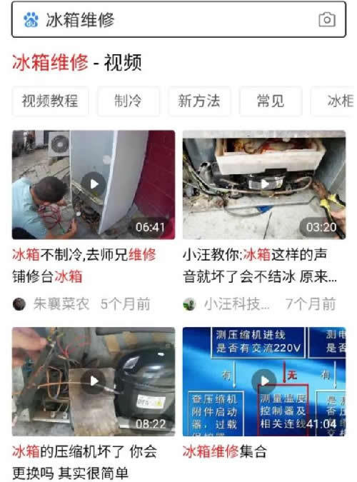 但這裏我們還有一種極端的解決方案,就是直接在標題裏面就把電話寫進去,當用户在百度搜索時,不用點擊進入誰的網站,就能直接看到你的電話進行撥打,節省用户的時間。當然也需要我們進行嘗試,根據結果看有無必要。這也是我們最後要説的標題優化。D“要免費維修視頻教程”怎麼解決?這説明有一部分羣體是想看免費的視頻教程,自己學會來修理,我想肯定也是為了省錢或覺得問題簡單,能修就自己修理,也不想讓維修人員單獨跑一趟,多麻煩。既然用户都這麼善良,那作為服務方就滿足他們這個願望吧,問題太簡單了跑一趟又賺不了什麼錢,也不可能敲詐人家。如果把方法告訴他還是搞不定,相信我他也一定會找你。這裏,我能想到的解決方案是,在網站首頁中間位置增加一個視頻內容板塊,用來發布原創制作的冰箱維修講解視頻,教他們一些最簡單的維修方法,或一些常規操作。如下操作方法,我們在首頁貼出一個視頻畫面+標題描述的鏈接: