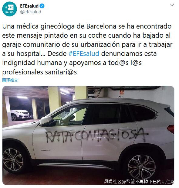 準備上班抗疫,西班牙醫護的車卻被扎爆胎,還被寫上辱罵性言論_風聞