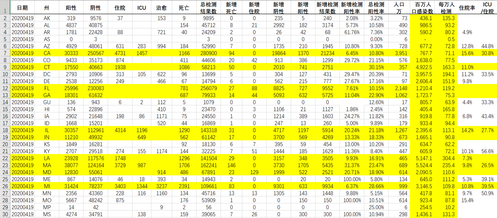 很多州開始慢慢有相關住院人數信息,但依然不全,且可靠性存疑,僅作參考,海涵;