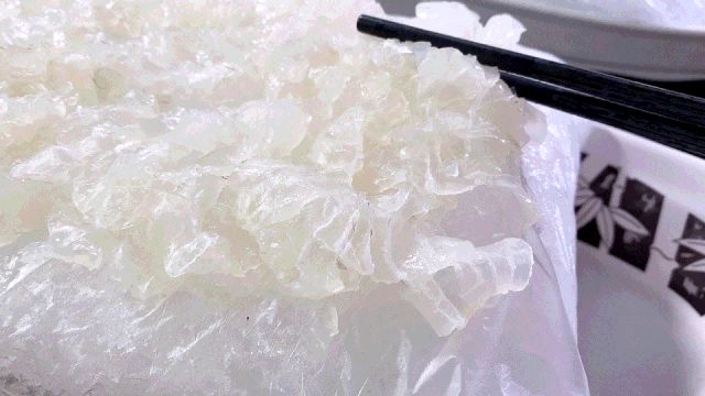 下單以後,英姐很快就捧着一盆魚生走過來,盆面上放着12個魚肉球,夾起其中一片魚肉,頓時感覺到它的薄如蟬翼、晶瑩剔透。