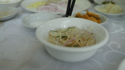 英姐叮囑我們,吃魚生一定要拌上上好的生油和鹽,這樣才最能彰顯魚肉的清鮮和口感的柔韌。