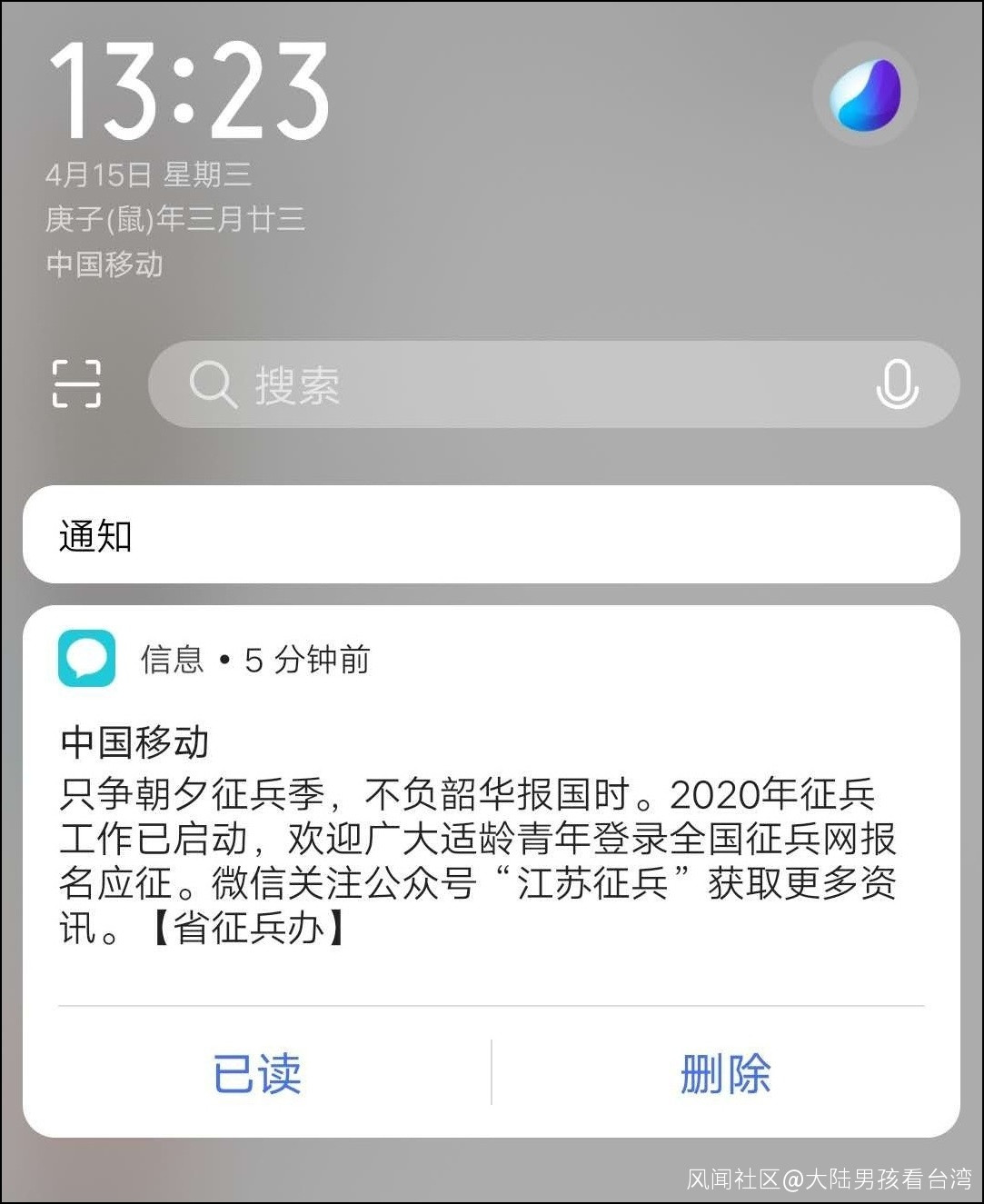嘿嘿嘿,島內民眾收到大陸徵兵短信_風聞