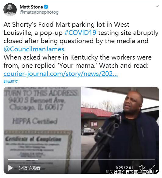 據《信使報》報道,在路易斯維爾市的假新冠肺炎檢測點是兩家醫療營銷公司搞的。這些人承諾24小時內可以給出檢測結果,並且最高只收取250美元的費用。這些營銷公司在給做假檢測之前,會要求患者提供保險信息及社會保險賬號。