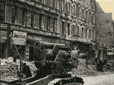 在最後的柏林戰役中,德軍躲在堅固混凝土防禦工事和樓房中負隅頑抗,蘇軍則將B-4榴彈炮推進至目標前200-350米距離進行直瞄射擊,一棟棟大樓被這種拆牆利器所摧毀,步兵伴隨着斯大林重錘的怒吼衝撕碎德軍防禦。