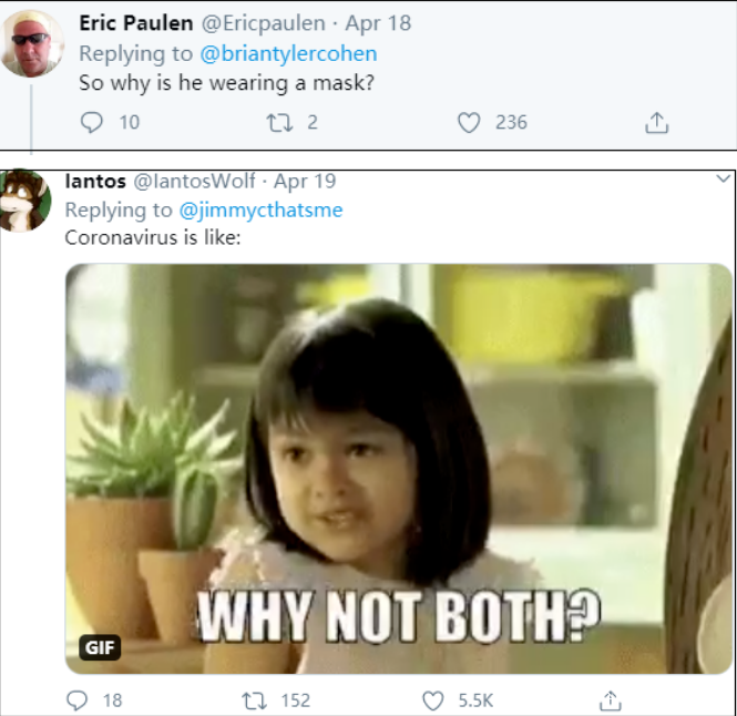 支持嚴格防疫措施的美國網民,則對這魔幻的一幕幕展開了反擊。在宣稱“新冠肺炎是謊言”的圖片下面,一位網民諷刺説“那這個人帶口罩幹嘛?”而在那張“要自由或是死亡”的圖片下面,另一位獲得大量點讚的網友也辛辣挖苦説:“在新冠病毒看來,這倆東西都應該給你。”