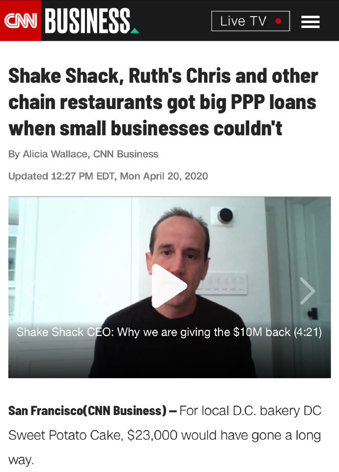 小企業救濟上限$1000萬,數個大型餐飲集團把自己拆分,領到了$1500-$2000萬,真正的“小買賣”,沒有律師/會計師幫忙、不是銀行VIP客户,排在後面,輪到他們,錢早沒了。共和黨以救世主自居,宣稱“必須加錢”,大家以為幫的是街邊小館,又很支持,實際上小店一萬一萬地領,怎麼會幾千億瞬間就沒了