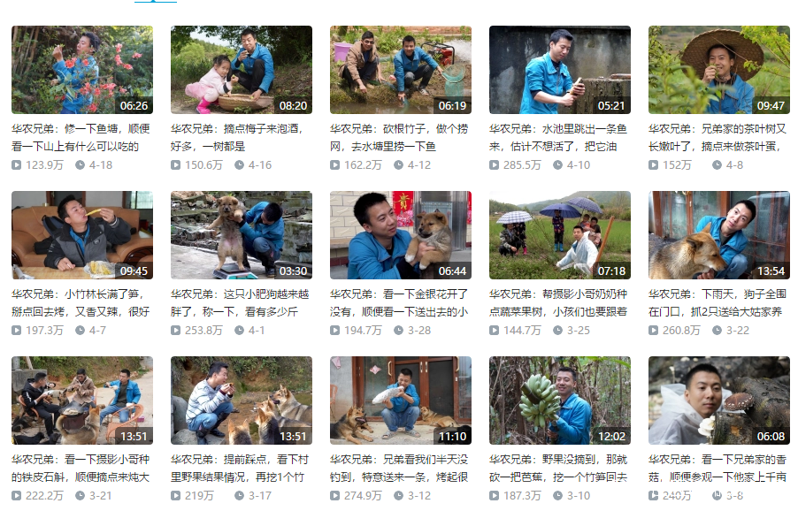 華農兄弟成了網紅,視頻內容也大大擴展,不再侷限於竹鼠了。