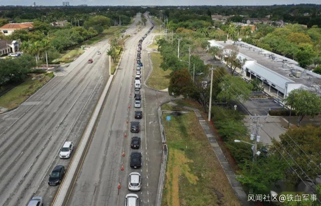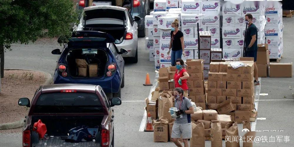 在得克薩斯州,排隊領取食物補助的人們把停車場停的水泄不通。