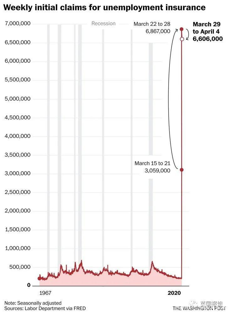 然後就是3月16日,川普宣佈對歐洲禁飛,全國進入抗疫動員。 那一週的失業申報人數直接飆升到了300萬!