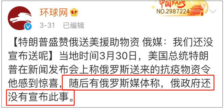 最近,美國總統特朗普感謝了俄羅斯贈送的物資。
