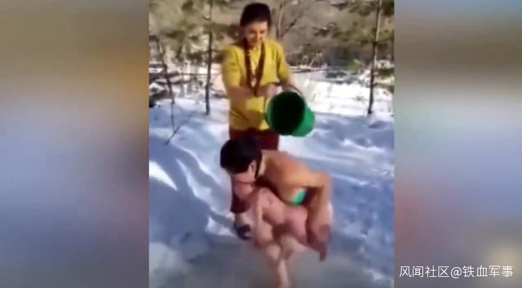 比如這些俄羅斯媽媽,為了鍛鍊孩子的意志,在雪地裏用冰水給孩子沖澡……