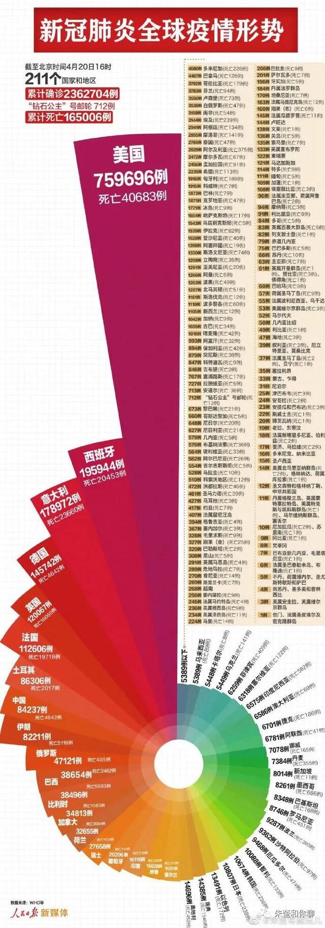到昨天為止,全世界最發達最富有的美利堅合眾國,特朗普總是掛在嘴上,美國最好,美國第一的美國,疫情感染確診75萬人,死亡超過4萬人,應了特朗普的美國第一。
