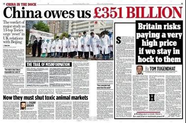 英國副相達米安帶領15名保守黨成員上書,希望政府通過國際法庭向中國索賠3510億英鎊。