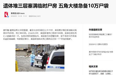 為特朗普認清現實埋單的,是50萬美國民眾感染新冠病毒,和美國國防部為掙扎生死的老百姓悄悄備下的10萬裹屍袋。