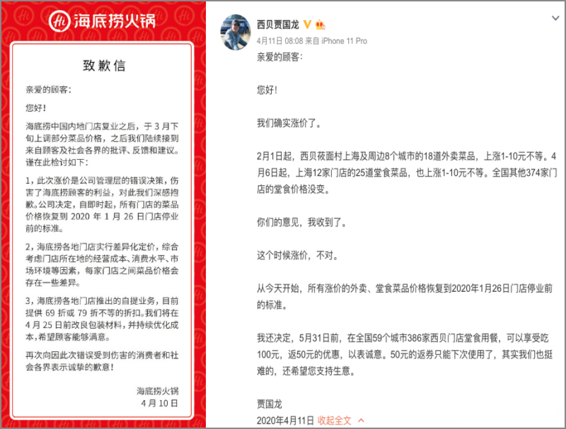 海底撈和西貝憑藉漲價、致歉、再恢復原價的神反轉,多次登上微博熱搜,成為全民熱議話題。