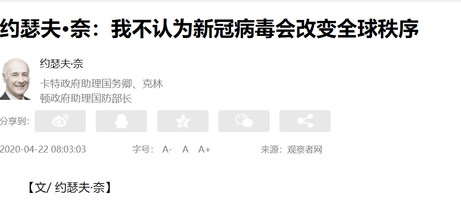 西方的約瑟夫·奈對中國的預測何時正確過嗎?_風聞