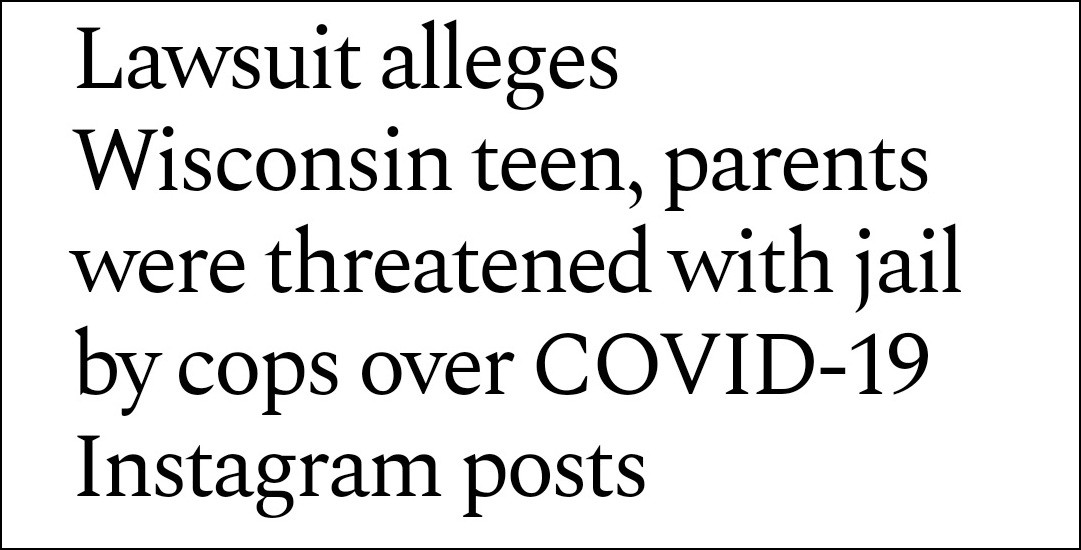 來自美國威斯康星州的16歲高中生阿米亞·科洪(Amyiah Cohoon),在結束自己的春假旅行後疑似感染新冠肺炎。3月下旬,她因為在社交網絡上分享自己治療的經過,被馬奎特縣警察局要求刪帖,否則的話,她的父母就要面臨到逮捕的可能。