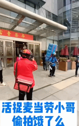 在視頻中可以看到,外賣員不是徒手背起這三個外賣箱的,而是有獨特的裝備,這難道就是傳説中的“機械外骨骼”?看到這一幕,一旁金拱門的外賣小哥都投來了羨慕的目光,拿起手機“咔咔咔”拍了起來。