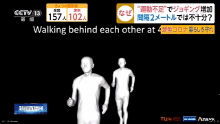 不少日本民眾認為,如果保持2米左右的社交距離進行慢跑等運動,能夠避免感染新冠肺炎。但日本媒體在報道時提醒民眾説,在慢跑情況下,保持2米的社交距離是不夠的,因為奔跑的人背後會形成螺旋狀氣流,從口中噴出的唾液順着氣流向後方飛散,即使是2米的社交距離也可能感染他人。在慢跑中為了避免飛沫,最好保持10米的社交距離。