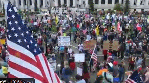 美國民眾上街拉橫幅、堵路、持槍、包圍議會大樓,已有十幾個州出現民眾抗議居家隔離,要求復工。