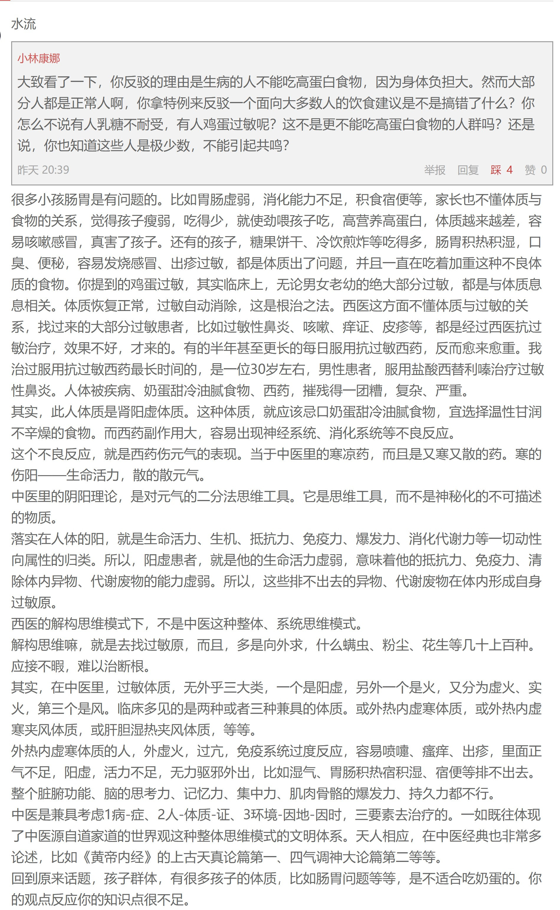 回到原來話題,孩子羣體,有很多孩子的體質,比如腸胃問題等等,是不適合吃奶蛋的。你的觀點反應你的知識點很不足。
