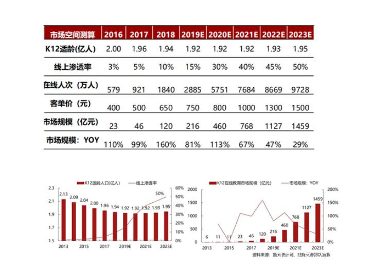 招商證券研報:K12在線教育市場規模測算2016-2023E
