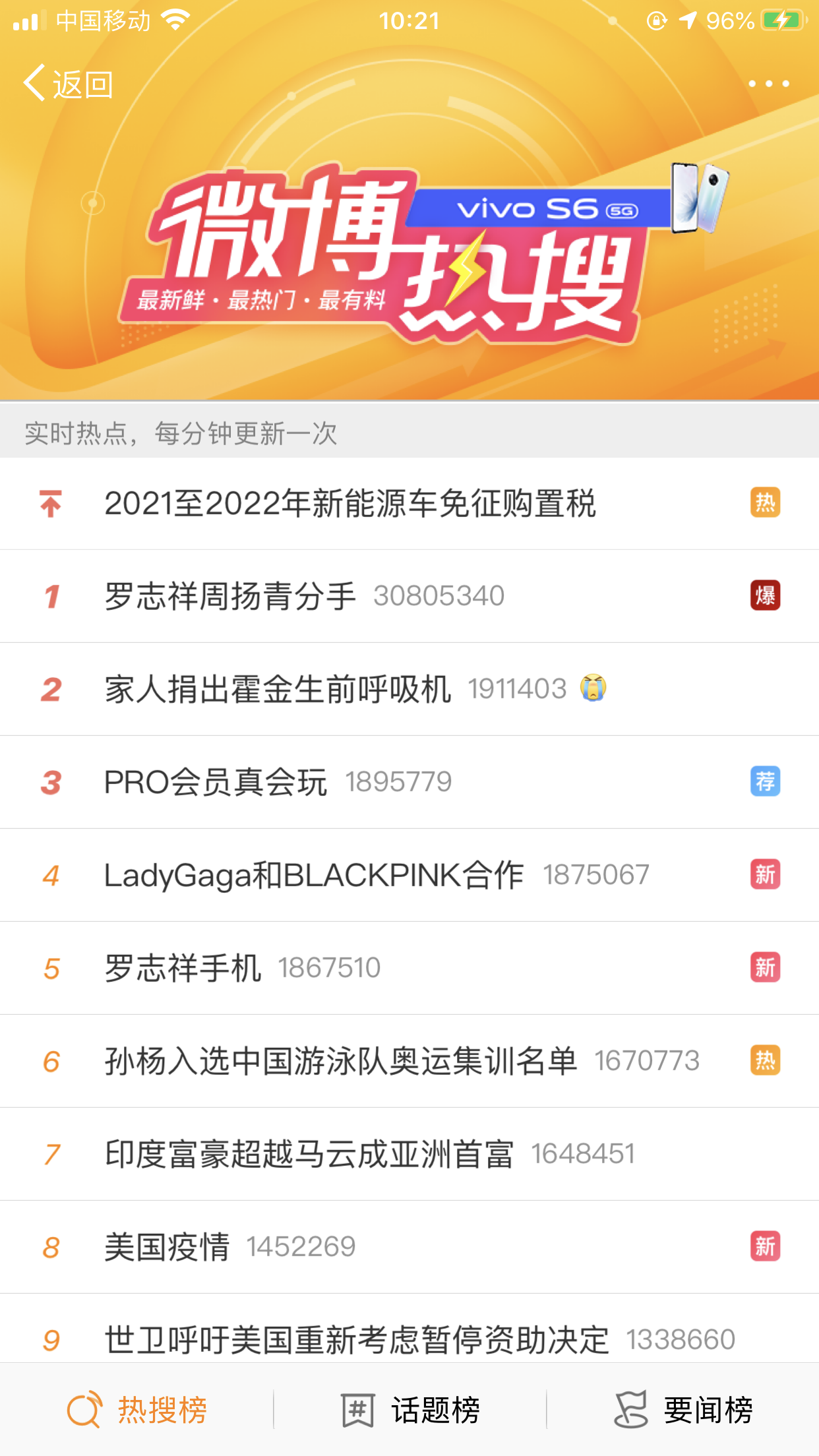 由於爆料內容過於勁爆,周揚青微博發出之後不過十幾分鍾,“羅志祥周揚青分手”的話題就竄上微博熱搜榜榜首。