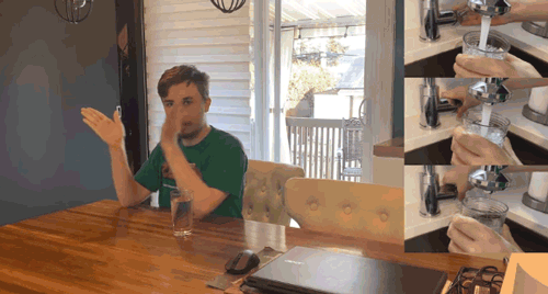 除了簡短的介紹,該遊戲還附上了一段38秒的視頻,就像介紹裏説的那樣,開發者説完了自己的想法,拿着杯子去水龍頭前接滿了水,對着鏡頭喝了下去。