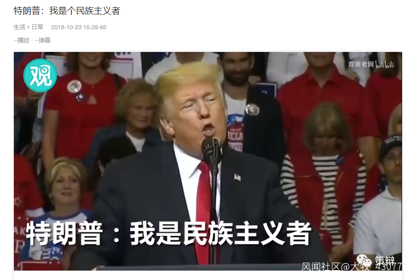希特勒、墨索里尼等法西斯主義者,均是狹隘的民族主義者。特朗普多次在公開場合聲稱自己就是民族主義,並不顧全球利益,瘋狂退羣,證明自己是個民族主義者。