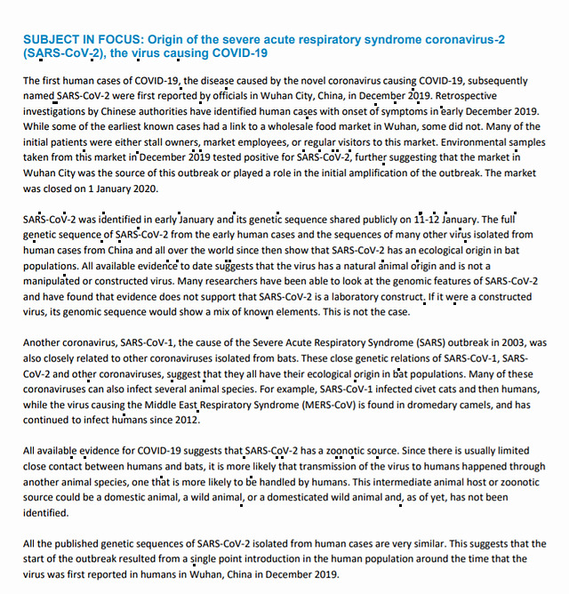 世衞組織最新報告:目前所有已知證據表明,新冠病毒非人為操縱或由實驗室合成_風聞