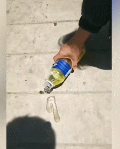 村民演示,將水從瓶子裏倒出來,馬上開始起沫: