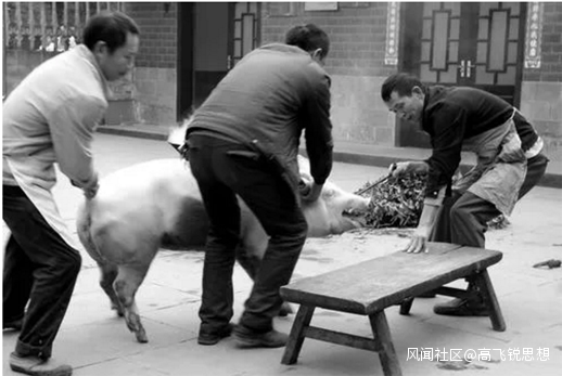 有食不愁長,吃了睡,睡了吃的豬,在瘋狂長肉,八個月十個月就長到了兩百多斤,可以宰殺或售賣了。那時候賣豬有兩種,要麼整隻被豬販子牽走;要麼在過年前,趁市場行情好,宰了,賣豬肉。前一種省事,後一種麻煩,如果賣不掉的肉,就只能自己留着了,有點風險。