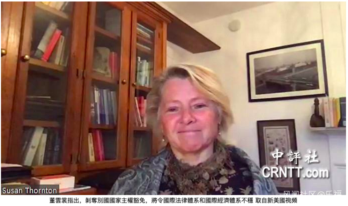 前美國代理國務卿董雲裳21日在華府智庫“新美國”(New America)舉辦的“新冠疫情如何改變美中關係”網絡對話會上,被問到如何看待美國國內興起的剝奪主權豁免立法,意欲追責索賠中國的動向。董雲裳從前資深外交官的角度,做上述表示。