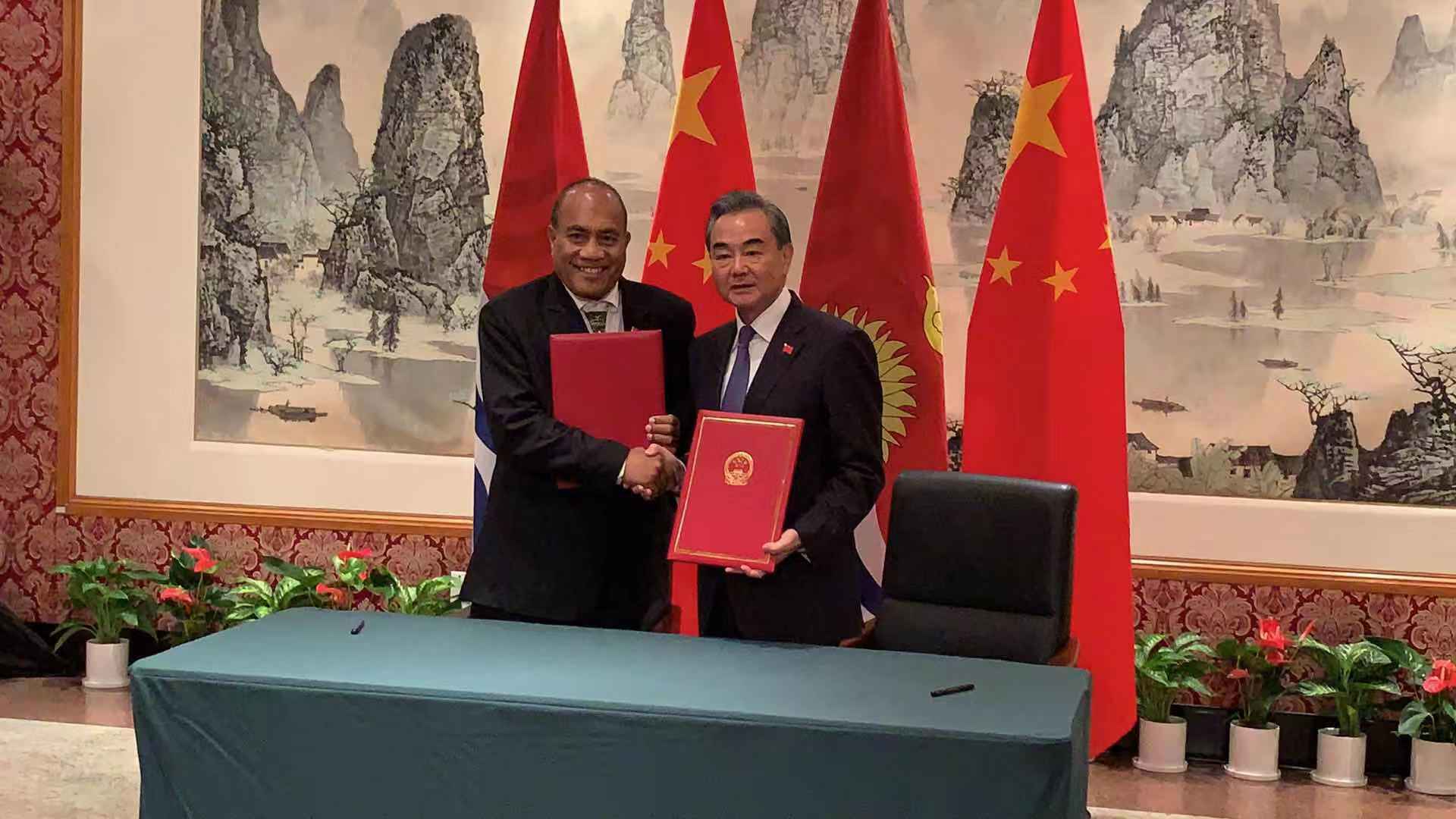 去年9月底,中基兩國簽署“恢復外交關係的聯合公報”。基裏巴斯共和國政府承認世界上只有一箇中國,中華人民共和國政府是代表全中國的唯一合法政府,台灣是中國領土不可分割的一部分。基裏巴斯共和國政府即日斷絕同台灣的“外交關係”,並承諾不再同台灣發生任何官方關係,不進行任何官方往來。中方對基裏巴斯共和國政府的上述立場表示讚賞。