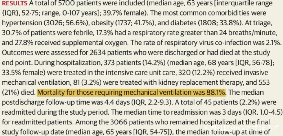 71近日,美國知名醫學期刊《美國醫學會雜誌》(JAMA)刊登了一篇十分嚇人的論文。 這篇研究了美國紐約市5700名新冠肺炎住院患者的論文宣稱,他們統計發現,使用呼吸機的患者,其死亡率高達88%!